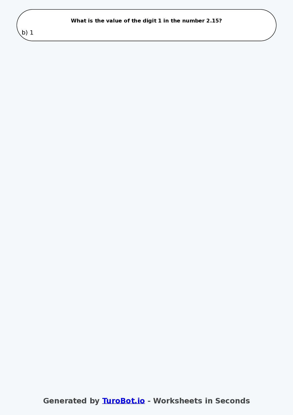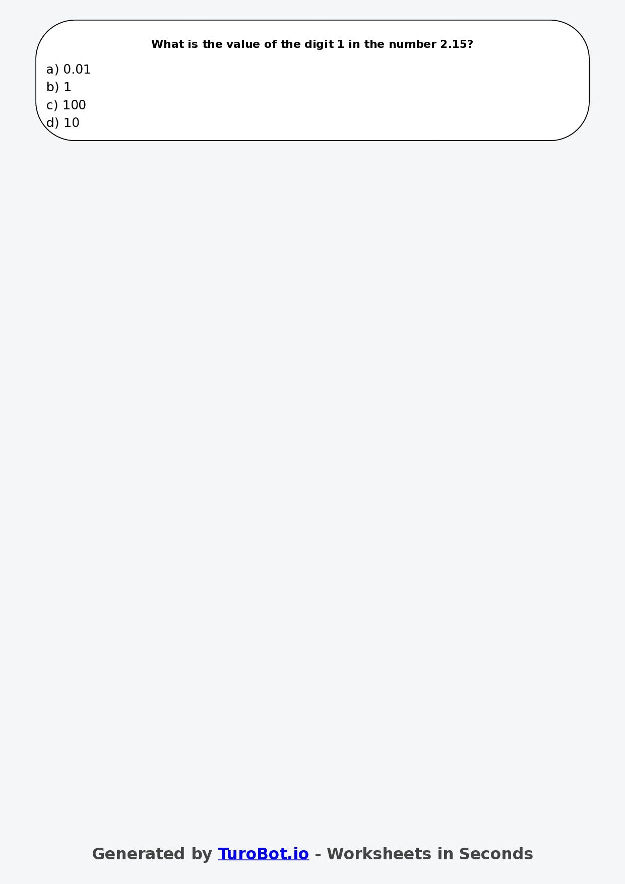 Year 3 Maths Multiple Choice Worksheet – Place Value with Decimals
